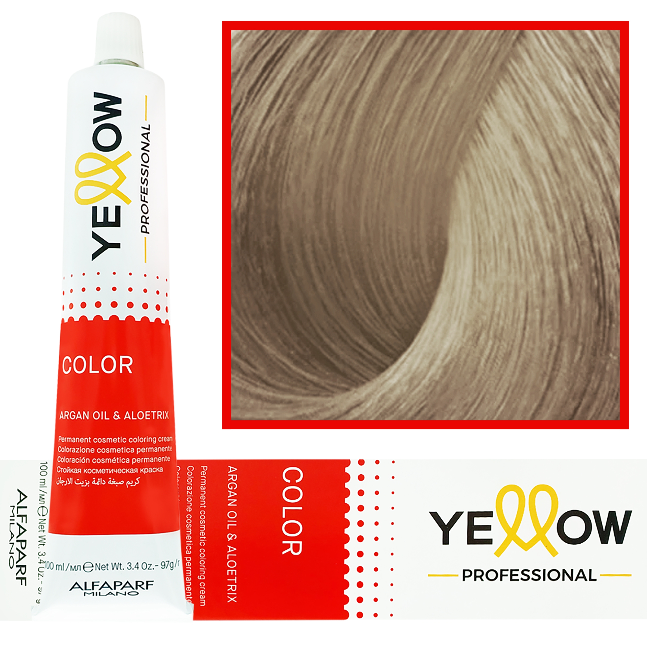Alfaparf Yellow – trwała farba do włosów z aloesem i kiełkami pszenicy, 100ml 9,13 | Bardzo Jasny Popielaty Złoty Blond