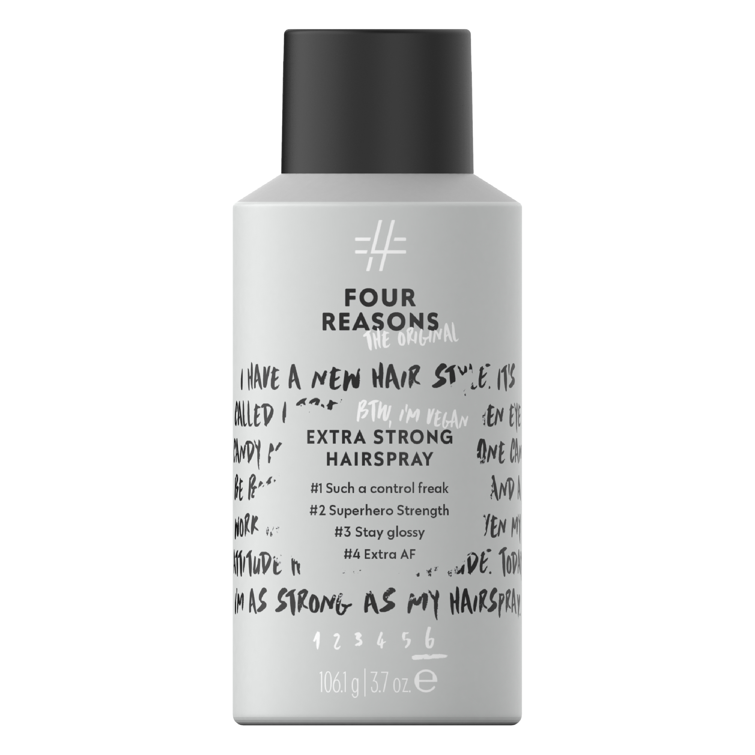 Formuła lakieru FOUR REASONS oparta jest na starannie dobranych składnikach, które pielęgnują włosy, jednocześnie zapewniając doskonałe utrwalenie. Dokładne informacje dotyczące składników znajdziesz na opakowaniu produktu.