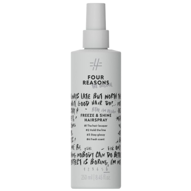 FOUR REASONS Original Freeze & Shine Hairspray to silne utrwalenie i naturalny połysk. Kliknij i odkryj mocny lakier do włosów dla trwałej fryzury.