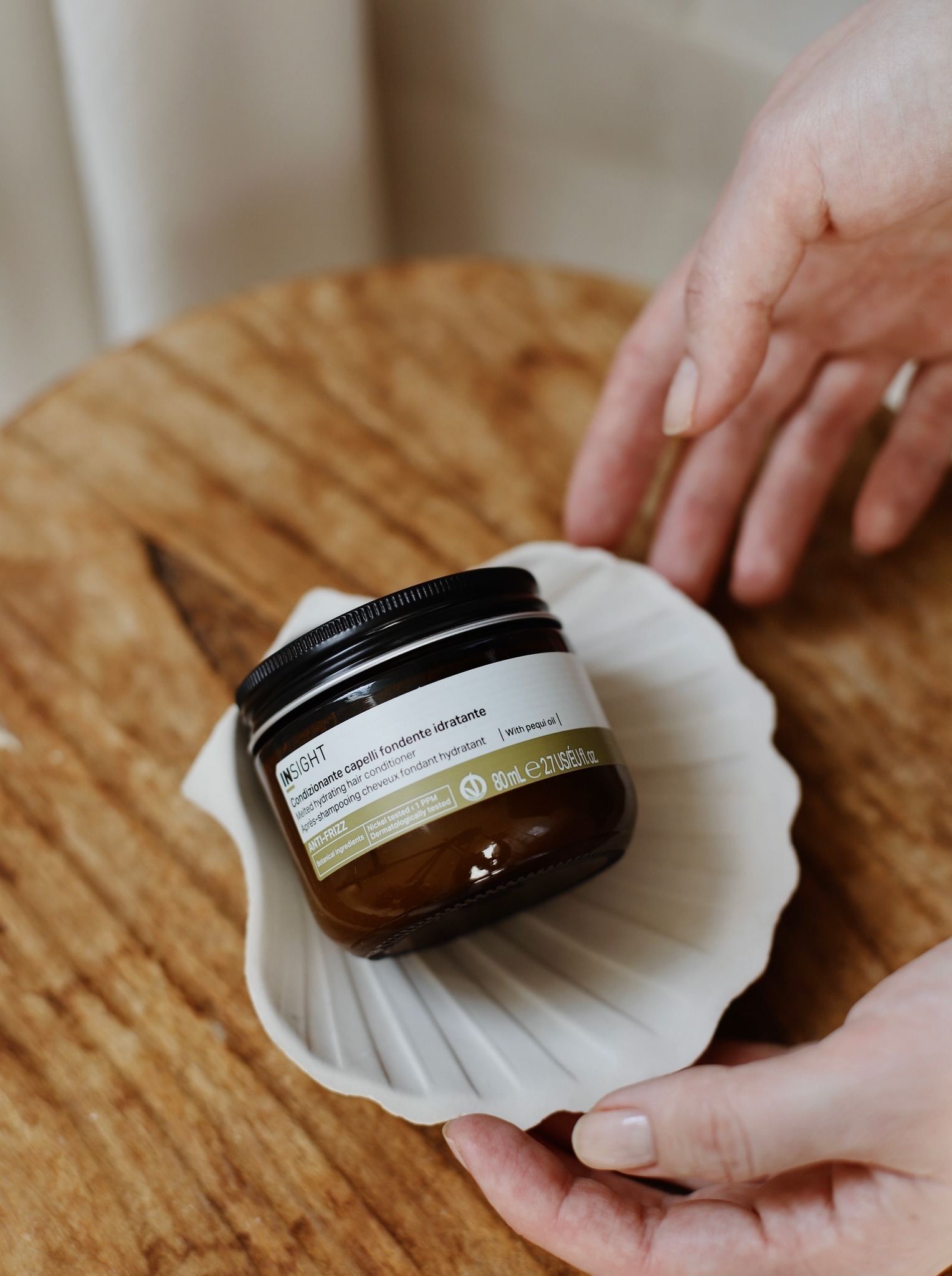 Skoncentrowana odżywka o stałej konsystencji do włosów puszących się INSIGHT Anti-Frizz 80 ml Skoncentrowana odżywka o stałej konsystencji do włosów puszących się. Jest to skoncentrowana formuła zapewniająca zastrzyk składników nawilżających i dyscyplinujących. Ułatwia rozczesywanie, przygotowuje włosy do stylizacji pomaga zapobiegać ich puszeniu. Bazuje na organicznym ekstrakcie z siemienia lnianego oraz odżywczym fitokompleksie (masło kakaowe, olej z bawełny i konopny). Idealna również do włosów kręconych i falowanych. Dlaczego ją pokochasz? Odżywka o stałej konsystencji INSIGHT Anti-Frizz to skoncentrowana formuła o niskiej zawartości wody. Jest bardzo wydajna i przyjemna w stosowaniu. Pod wpływem ciepła rąk zmienia się w miękką emulsję, która łatwo rozprowadza się na włosach, ułatwiając rozczesywanie. Na pierwszym miejscu w recepturze znalazła się gliceryna roślinna , czyli humektant o silnym działaniu nawilżającym. W połączeniu z ekstraktem z siemienia lnianego pomaga znacznie poprawić poziom nawilżenia puszących się włosów. Dodatek trzech rodzajów emolientów roślinnych odpowiada potrzebom włosów średnio i wysokoporowatych, pomagając je dyscyplinować i zapobiegać puszeniu pod wpływem zmian wilgotności powietrza. Odżywka świetnie sprawdza się w podróży lub na siłowni, ponieważ masz pewność, że nie wyleje się w kosmetyczce. 80 ml to pojemność idealna również do zabrania na pokład samolotu. Opakowanie wystarcza na około 20 zastosowań w przypadku włosów o średniej długości. Polecany dla Włosów puszących się, niezdyscyplinowanych oraz kręconych lub falowanych. Sposób użycia: Nabierz niewielką ilość produktu palcami lub szpatułką i rozpuść w dłoniach z niewielką ilością wody. Wmasuj dokładnie w wilgotne włosy na całej długości. Pozostaw na 3-5 minut, następnie dokładnie spłucz.