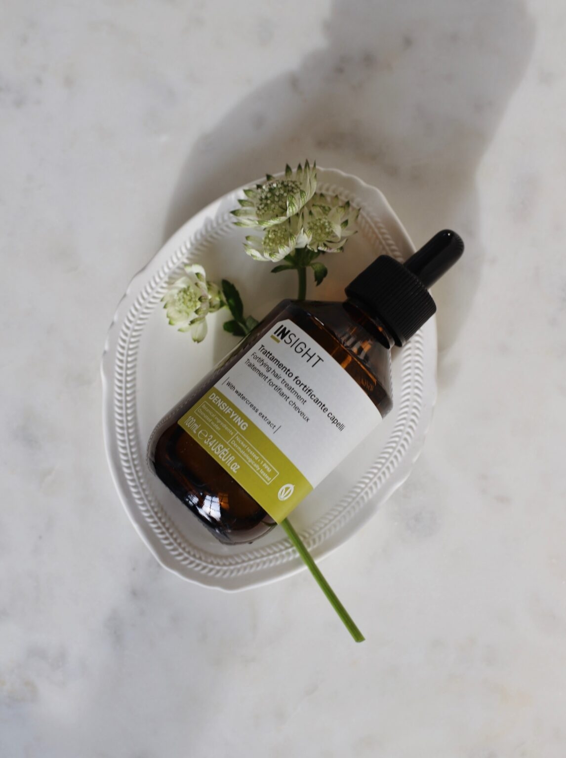 Wcierka na wypadanie włosów Insight Densifying (dawniej Loss Control) Profesjonalna kuracja trychologiczna dla słabych i wypadających włosów Szukasz skutecznej, ale delikatnej wcierki na wypadanie włosów? Insight Densifying to profesjonalna kuracja stworzona z myślą o osobach, które zmagają się z osłabieniem cebulek, sezonowym lub przewlekłym wypadaniem włosów oraz nadmiernym przetłuszczaniem skóry głowy. Wcierka stymuluje mikrokrążenie, wzmacnia cebulki i poprawia ogólną kondycję skóry głowy – bez efektu przetłuszczania czy podrażnienia. To idealne rozwiązanie dla tych, którzy cenią naturalny skład, skuteczność i prostotę pielęgnacji . Czym jest Insight Densifying? Insight Densifying Treatment to profesjonalna wcierka stymulująca , dedykowana włosom cienkim, delikatnym oraz wypadającym. Kuracja została opracowana z myślą o domowym rytuale trychologicznym , który przynosi realne rezultaty bez skomplikowanych procedur. Dzięki połączeniu ekstraktów roślinnych, olejków eterycznych i substancji aktywnych, produkt: ✔ poprawia mikrokrążenie skóry głowy, ✔ dotlenia cebulki, ✔ ogranicza wypadanie włosów, ✔ wspiera wzrost nowych włosów (baby hair), ✔ przywraca równowagę skóry głowy. Wcierka szybko się wchłania, a jej formuła nie obciąża skóry głowy. Dla kogo jest polecana wcierka na wypadanie włosów Insight Densifying? Ta wcierka została stworzona z myślą o Tobie, jeśli: ✔ Zauważasz, że Twoje włosy wypadają bardziej niż zwykle, ✔ Chcesz wzmocnić cebulki i pobudzić wzrost nowych włosów, ✔ Twoje włosy są cienkie, osłabione lub pozbawione energii, ✔ Szukasz profesjonalnego efektu, ale w domowym rytuale pielęgnacyjnym, ✔ Zależy Ci na naturalnym składzie, bez zbędnych dodatków, ✔ Dbając o siebie, chcesz zadbać też o spokój skóry głowy. To produkt dla kobiet i mężczyzn, którzy stawiają na skuteczność i prostotę w pielęgnacji. Jak stosować wcierkę na wypadanie włosów INSIGHT? Po umyciu szamponem przeciw wypadaniu Densifying , nałóż pipetą niewielką ilość wcierki bezpośrednio na skórę głowy (najlepiej po osuszeniu ręcznikiem). Wmasuj delikatnie okrężnymi ruchami opuszkami palców. ❗ Nie spłukuj. Kuracja intensywna: stosuj raz dziennie lub minimum 3 razy w tygodniu przez 2–3 tygodnie. Kuracja profilaktyczna lub podtrzymująca: stosuj 1–2 razy w tygodniu przez 5–6 tygodni. Efekty stosowania wcierki Insight ✔ Redukcja wypadania włosów ✔ Mocniejsze, grubsze i bardziej elastyczne pasma ✔ Zdrowsza skóra głowy ✔ Uspokojenie i odświeżenie skalpu ✔ Stymulacja wzrostu włosów Testy potwierdzają: włosy gęstsze, skóra głowy zdrowsza Stosowanie produktów z linii Densifying (Szampon Wzmacniający + Wzmacniająca Kuracja do Włosów) przynosi Twoim włosom widoczne korzyści, potwierdzone poprzez: testy skuteczności (in vitro), które oceniły działanie kuracji w zakresie wspomagania redukcji sezonowego wypadania włosów testy samooceny przeprowadzone wśród ochotników Co odkryliśmy na podstawie wyników? Że stosowanie produktów Densifying przyczynia się do redukcji sezonowego wypadania włosów po 56 dniach kuracji. Co więcej: 95% ochotników biorących udział w testach samooceny* zauważyło, że ich włosy i skóra głowy są mocniejsze, fryzura jest zagęszczona, a kuracja jest wartościowa i skuteczna – dlatego kupiliby produkt ze względu na jego właściwości. *Test przeprowadzony na 20 ochotnikach. Składniki aktywne w Insight Densifying Treatment ✔ Ekstrakt z kasztanowca (Aesculus Hippocastanum) – znany z działania wzmacniającego naczynia krwionośne i poprawiającego mikrokrążenie w skórze głowy. Pomaga dotlenić cebulki włosów i stymuluje je do wzrostu. ✔ Ekstrakt z rukwi wodnej i nasturcji (Nasturtium Officinale + Tropaeolum Majus) – połączenie tych roślinnych ekstraktów wspomaga ukrwienie i wzmacnia włosy u nasady. Idealne w przypadku nadmiernego wypadania i osłabienia cebulek. ✔ Ekstrakt z jeżówki bladej (Echinacea Pallida) – działa łagodząco i wspierająco dla skóry głowy. W naturalny sposób wspomaga równowagę mikrobiomu skóry i wzmacnia cebulki. ✔ Ekstrakt z guarany (Paullinia Cupana) – bogaty w kofeinę, która pobudza mieszki włosowe, przyspieszając wzrost nowych włosów. Dodaje energii skórze głowy i działa tonizująco. ✔ Olejek z drzewa herbacianego (Melaleuca Alternifolia) – silnie oczyszcza, działa antybakteryjnie i wspiera zdrowe środowisko skóry głowy. Polecany w pielęgnacji przy problemie nadmiernego przetłuszczania i stanach zapalnych. ✔ Olejek z mięty pieprzowej (Mentha Piperita) – zapewnia przyjemne uczucie chłodzenia i świeżości. Pobudza mikrokrążenie i może wspomagać wzrost włosów poprzez lepsze ukrwienie skóry głowy. ✔ Mentol i kamfora – składniki o właściwościach chłodzących, które wspomagają aktywację cebulek i nadają przyjemny efekt świeżości. ✔ Pantenol (prowitamina B5) – nawilża skórę głowy, łagodzi podrażnienia i wzmacnia włosy od nasady aż po końce. Rytuał przeciw wypadaniu włosów – stosuj w połączeniu z produktami: Wcierka na wypadanie włosów od INSIGHT możesz stosować w połączeniu z: Insight Densifying Shampoo – delikatny szampon, któr