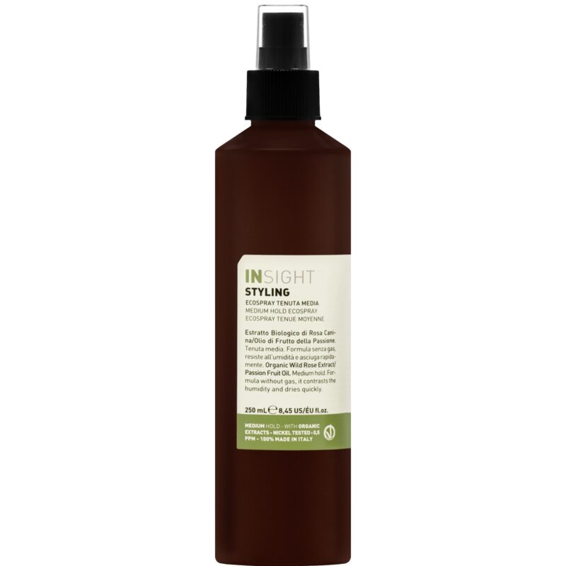 Insight Styling Medium Hold Ecospray – ekologiczny lakier bez gazu, zapewnia średnie utrwalenie i ochronę przed wilgocią, idealny dla każdego typu włosów.