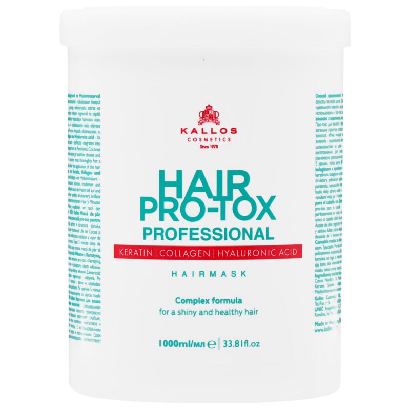 Kallos Hair Pro-Tox Mask z kolagenem i kwasem hialuronowym 1000ml – skuteczna pielęgnacja dla zniszczonych włosów. Odzyskaj blask i miękkość już dziś!