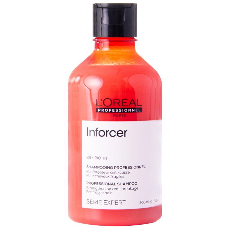 Loreal Inforcer – szampon nawilżający z biotyną do łamliwych włosów. Wzmacnia, regeneruje i chroni włosy, przywracając im zdrowy, pełen blasku wygląd.