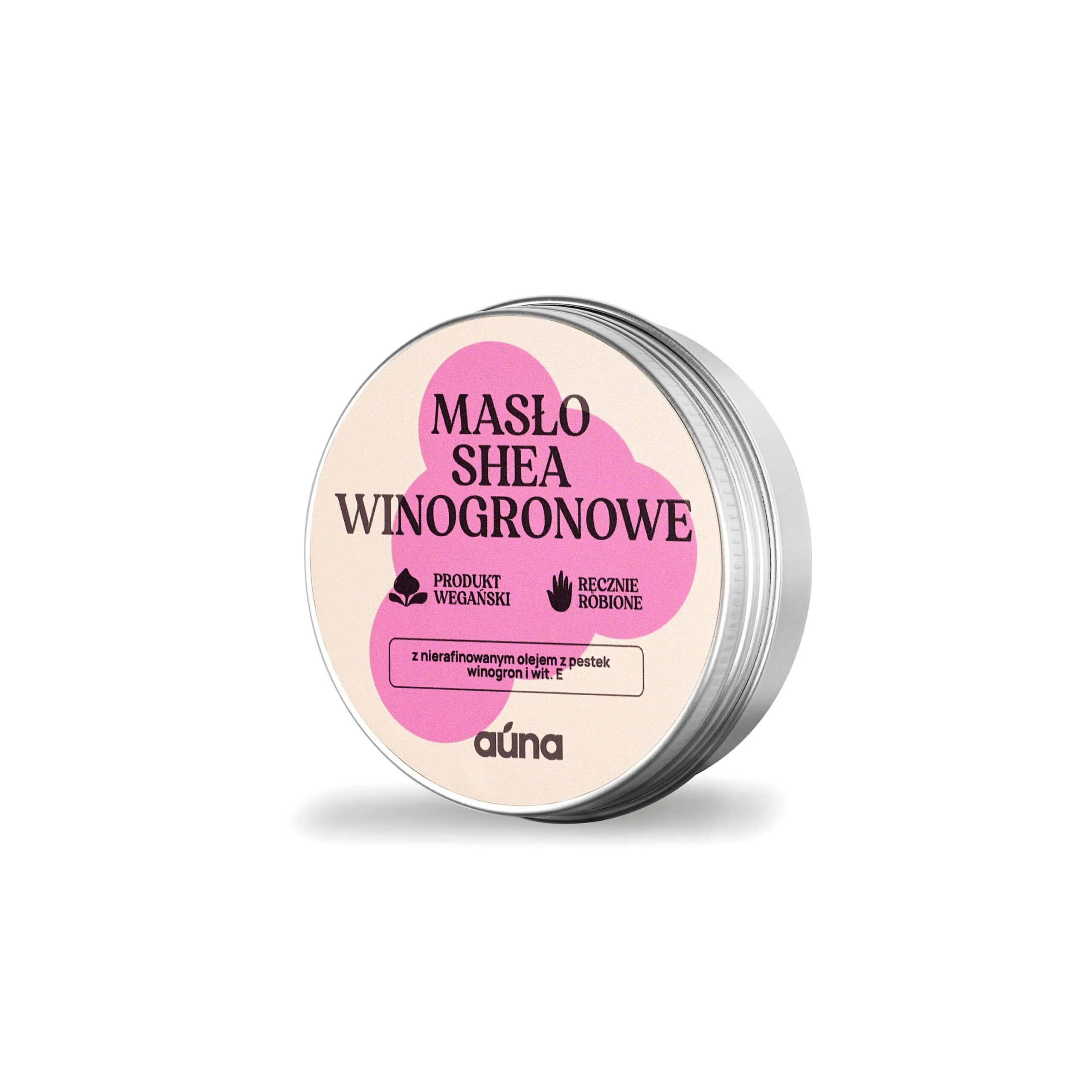 Winny? Winny! Ogłaszamy wszem wobec, że nasze masło shea jest winne, bo powstałe z dodatkiem oleju z pestek winogron. Ten składnik zawiera witaminę E, która poprawia wygląd skóry, chroni przed starzeniem się komórek, utrzymując świeży wygląd na długo. To recepta na młodość! Masło shea do twarzy winogronowe z pewnością na stałe zagości w Twojej kosmetyczce. W końcu chcesz być wiecznie młoda, prawda? Masło shea znakomicie nawilża, ujędrnia i odżywia ciało. Puszysta, gładka konsystencja sprawia, że już samo nakładanie naszego masła będzie prawdziwą przyjemnością. A jeśli dodać do tego zapach winogronowy, mamy przepis na kosmetyk idealny! Po zetknięciu się ze skórą kosmetyk delikatnie się roztapia i przybiera formę olejku, więc to doskonały sposób na pokąpielowy relaks. Możesz używać go o każdej porze roku – ten zapach latem orzeźwi, a zimą przywoła wspomnienie słodkich owoców dostępnych na wyciągnięcie ręki. Postaw na nasze masło shea. Winogronowe aromaty z pewnością Cię w sobie rozkochają! A może wolisz masaż? Produkt szybko się wchłania i nie pozostawia lepkich smug, dlatego świetnie sprawdzi się właśnie w tym celu. Nasze winogronowe masło shea będzie winne ładnemu wyglądowi Twojej skóry! 🙂   Dodatkowe informacje Pojemność: 60 ml. Produkt w 100% wegański. Z miłości do ludzi i zwierząt <3 Produkt ręcznie robiony i zapakowany w pudełko aluminiowe nadające się do recyklingu. Produkt nie jest przeznaczony do jedzenia, choć wiemy, że kusi zapachem 🙂 Sposób użycia: nałóż kosmetyk na całe ciało lub twarz bezpośrednio po kąpieli bądź na suchą skórę – jak wolisz.   Skład: masło shea, olej kokosowy, olej z pestek winogron, olej migdałowy, witamina E, kompozycja zapachowa, pigment mineralny. INCI: Butyrospermum Parkii Butter, Cocos Nucifera Oil, Prunus Amygdalus Dulcis Oil, Vitis Vinifera Seed Oil, Tocopheryl Acetate, Parfum, Linalool, Limonene, Hexyl Cinnamal, Citronellol, Geraniol, Mica, Magnesium Stearate, CI 77491, CI 77891