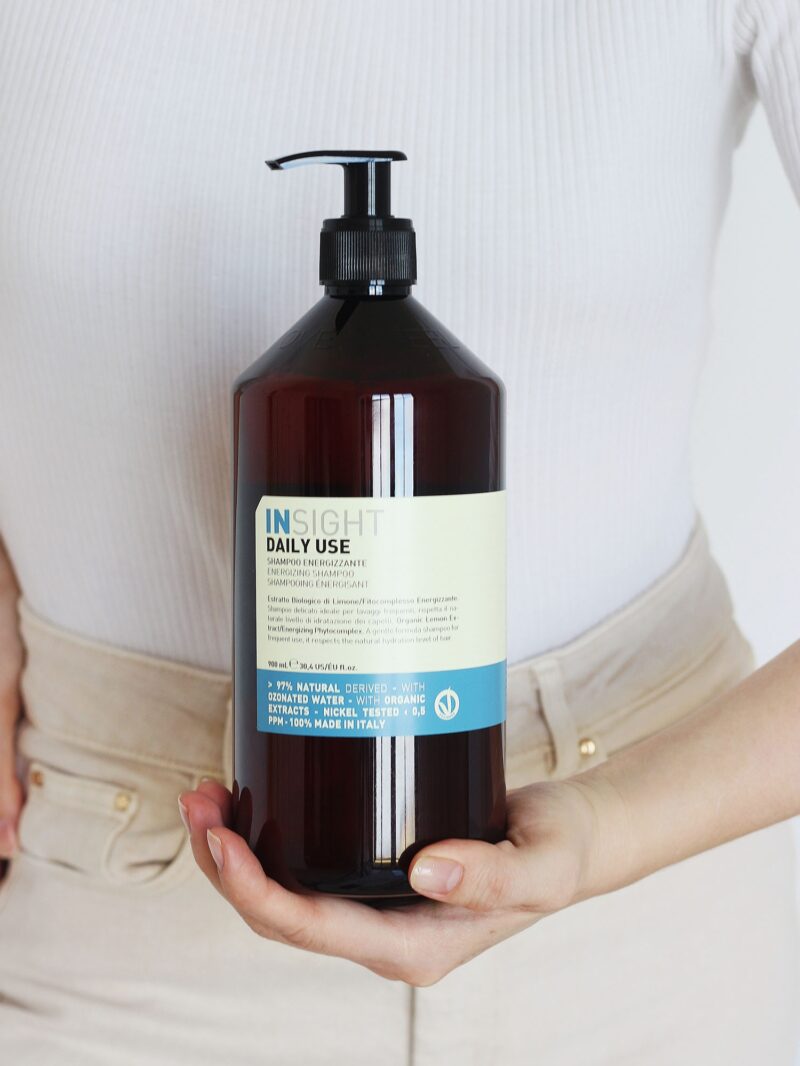 Szampon Daily Use od marki INSIGHT to doskonałe rozwiązanie dla wszystkich, którzy chcą zadbać o swoje włosy na co dzień. Dzięki starannie dobranym składnikom, zapewnia delikatne oczyszczenie, nie naruszając naturalnej równowagi skóry głowy. Włosom zapewnia miękkość, naturalny blask oraz nawilżenie, co czyni je zdrowymi i pełnymi życia.
