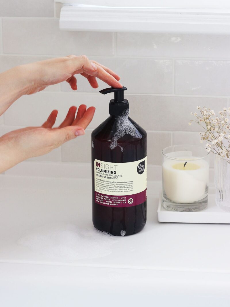 Szampon dodający objętości Volumizing 900ml INSIGHT – naturalna troska o cienkie włosy, które zyskają lekkość, sprężystość i objętość na dłużej.
