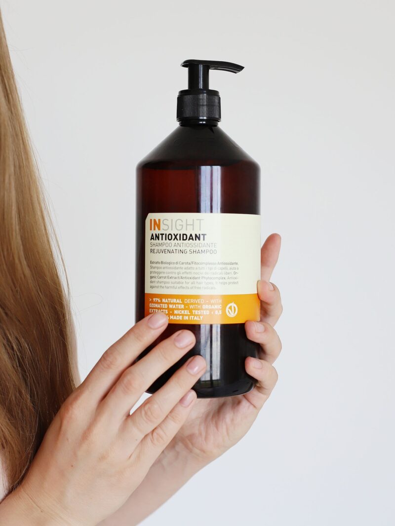 Odmładzający szampon Antioxidant INSIGHT chroni włosy przed szkodliwymi czynnikami, odżywia i przywraca blask. Naturalna pielęgnacja dla młodo wyglądających włosów.