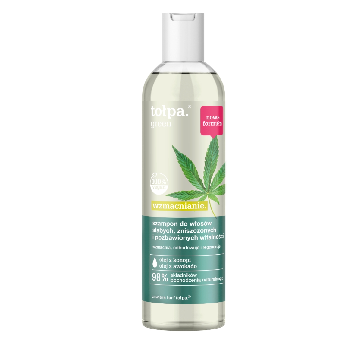 Włosy pozbawione energii, łamliwe i podatne na uszkodzenia potrzebują czegoś więcej niż zwykłego oczyszczenia. Szampon Tołpa Green Wzmacnianie to odpowiedź na ich potrzeby – delikatna, ale skuteczna formuła, która wzmacnia, odbudowuje i przywraca witalność. Dzięki połączeniu torfu tołpa.®, oleju z konopi, awokado, witaminy E i kwasu mlekowego, produkt działa wielopoziomowo: oczyszcza, nawilża i chroni przed łamliwością.