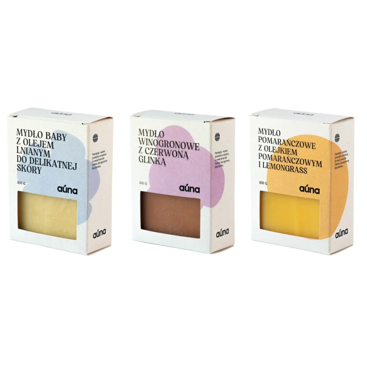 Zestaw naturalnych mydeł dla całej rodziny: mydło baby, mydło czerwone wino, mydło pomarańczowe